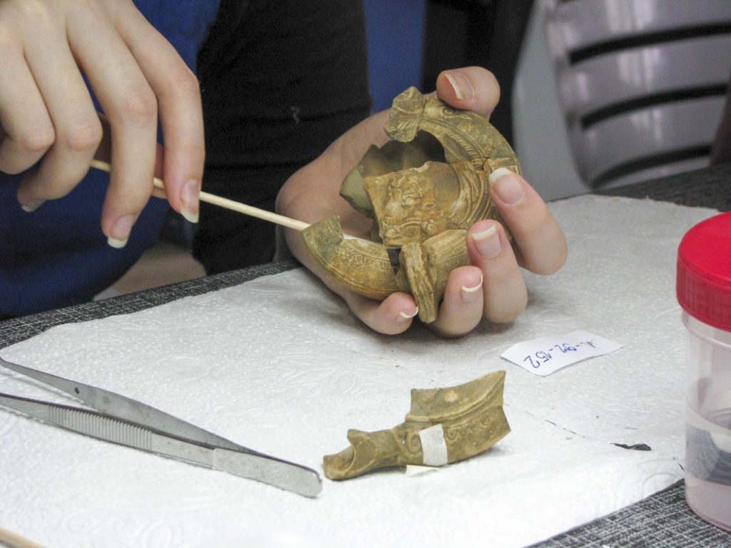 During the first two project weeks, students begin their training with replicas of ancient vessels. Once they reach an acceptable level of skill, accuracy and precision, they can progress to originals . Most students will be able to master conservation and restoration efforts within the course of this field school and expect to complete work on 3-5 artifacts by the end of the program, depending on the initial state of objects’ conservation, the necessity of conservation treatment and the individual performance of the student.
