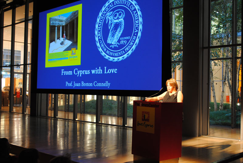 Donning traditional dress, lively dancers kicked off the evening’s festivities. The performance was followed by a lecture entitled “From Cyprus with Love,” which was presented by archaeologist Joan Breton Connelly, professor of classics and art history at New York University and director of the Yeronisos Island Excavations in Cyprus. Through mythological, archaeological, and art historical tales, she wove the island’s love stories into a tapestry featuring Aphrodite, goddess of love and beauty who according to legend was born of the foam that washes up on Cyrpus’s fair shores. “Cyprus is clearly an archaeological marvel with sites that anyone would want to see,” says AIA CEO Peter Herdrich. “It was a pleasure to hear Professor Connelly’s description of the country’s history and to see so many people beguiled by the island’s charms. During the presentation, my wife leaned over to me to say, ‘Now, I know where I want to go next summer.’”