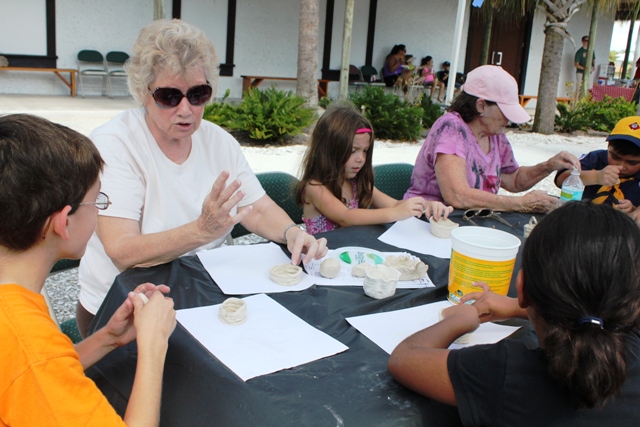 In honor of International Archaeology Day, the Marco Island Historical Museum hosted “Family Archaeology Day” on October 19, 2013 from 11 am to 2 pm. Families had the opportunity to create unique Calusa Indian masks and learn the techniques of pottery and bracelet making. With the help of real archaeologists, children were also able to sift through ancient sands looking for local archaeological treasures using the tools of the trade.