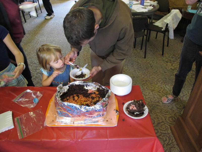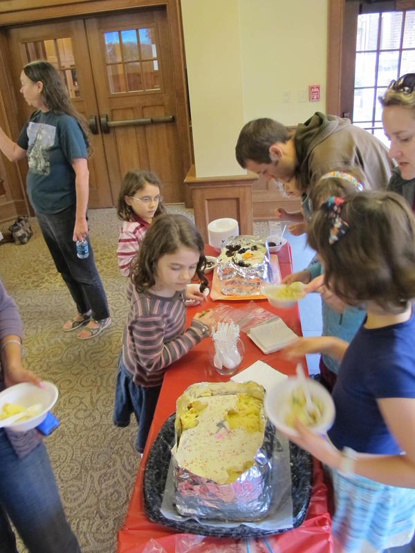 On October 23, 2011 at the University of Richmond, the Richmond Society of the AIA held an open house for National Archaeology Day. Dr. Elizabeth Baughan of the University of Richmond, and one of the field directors of the excavations at Hacımusalar Höyük described the past summer’s excavations, and University of Richmond undergraduates Nils Niemeier, Janelle Sadarananda, and Caroline Cobert gave presentations on their roles in the project. Dr. Baughan and her students baked an excavation cake, from the “Layer Cake Archaeology” lesson plan found on the AIA’s website. Children enjoyed excavating the cake, as well as coloring in coloring books with archaeological themes.
