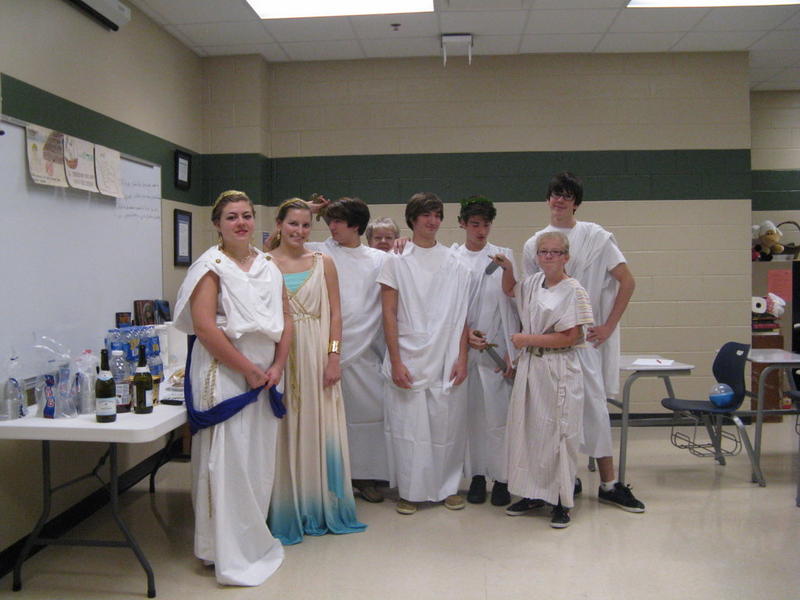 The Secretary of the AIA-Northern Alabama Society, Cathie Dunar, teaches high school Latin so she timed their big annual Junior Classical League chapter celebration to be the last school day before National Archaeology Day. Each class prepared Roman dishes and talked about Roman culture. AIA-Northern Alabama Society President, Dr. Lillian Joyce, came to visit for two class periods during the event.