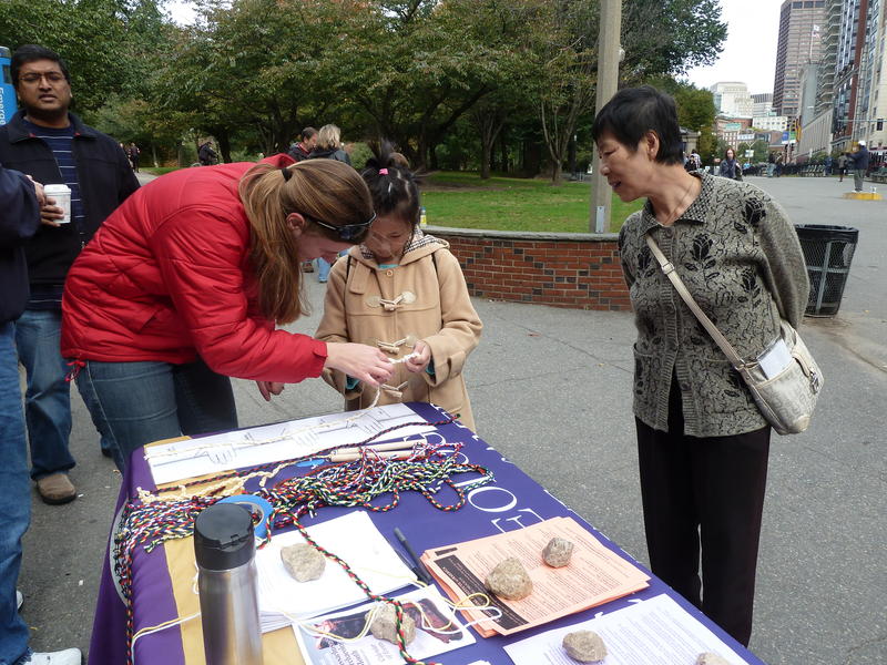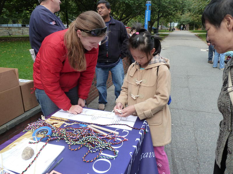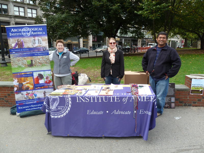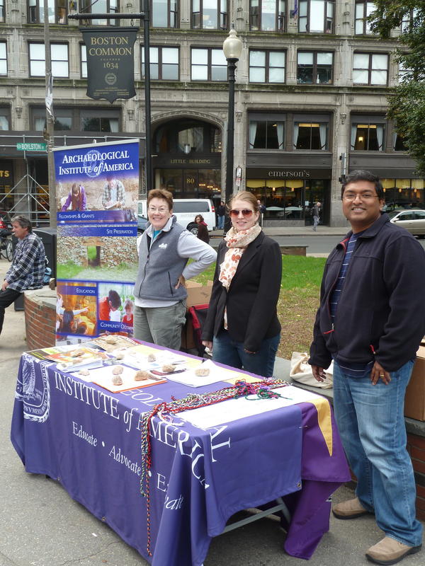 For National Archaeology Day, members of the AIA headquarters staff spent part of the day on Boston Common celebrating the day with passersby. Over the course of four hours they passed out Archaeology and Dig magazines to passing adults and children, distributed a map of local archaeological sites not included on the popular Freedom Trail, and showed several people how the Ancient Inca used quipu (khipu) as a recording device.