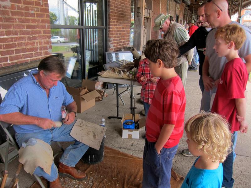 Building on their International Archaeology Day program from last year, the AIA-North Alabama Society shifted their Archaeology Fair from the local university campus to historic Lowe Mill, a large former textile mill, now a rising home for music, art, and culture. The event coincided with the weekly open studio day, so some visitors were there specifically for this year’s event and others dropped in because it looked fun! They had an archaeology lab tour, information tables, and hands-on activities including pottery making, atlatl throwing, the Native American game, chunkey, and a flint-knapping demo. In the evening a public lecture on “Eating in the Valley: Woodland Foodways along the Tennessee River.” was offered