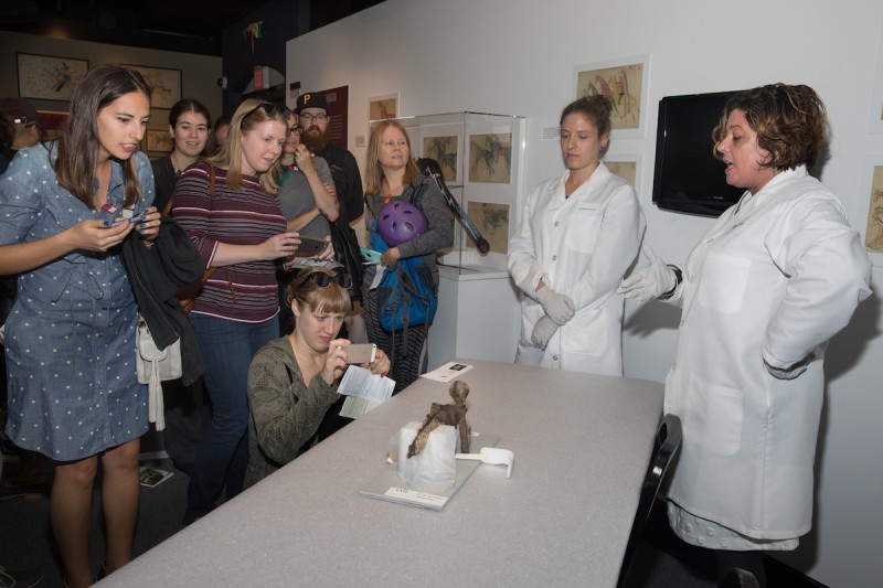 On October 8, Peabody Museum of Archaeology and Ethnology at Harvard University marked its 150th anniversary and International Archaeology Day with free admission all day, and an afternoon of hands-on activities, live music and birthday cake. Over 1500 visitors turned out for the event (which included free admission to the connected Harvard Museum of Natural History), to see curators bring out rare objects from storage, such as the FeeJee Mermaid, the bear claw necklace collected by Lewis & Clark, a 90,000 year old human skull from Israel, and a jadeite jewel of an Aztec goddess. Nearly 300 visitors checked out the Zooarchaeology Laboratory to touch and identify animal bones.