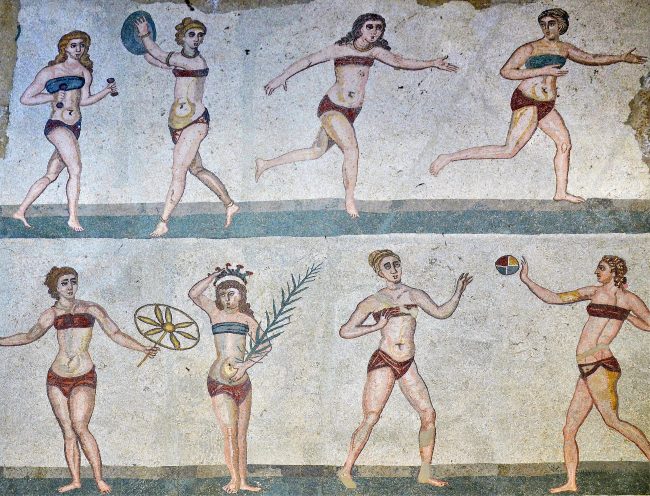 This mosaic of female athletes adorned a room in the Villa Romana del Casale in Piazza Armerina, Sicily.