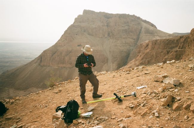 Flying the drone to model the northern ascent, with Masada in the background