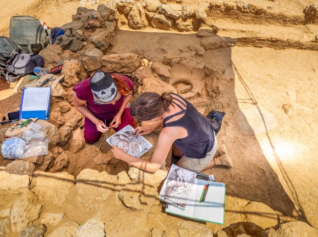 Removing The Paraphernalia Of Death Excavating at Sissi, Crete, a rare Late Minoan cist grave, inside an earlier mortuary building, containing a woman’s skeleton, as well as a bronze mirror with ivory handle, garment pins and a necklace strung with gold shaped like olive pits.