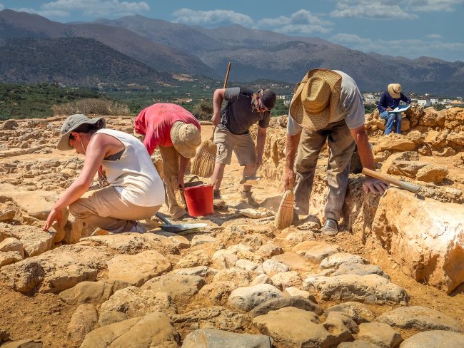 The Joy Of Archaeology Sure Beats Digging Ditches Urgent cleaning of a newly excavated ceremonial-ritual street into the central court of the Minoan settlement (2600-1200 BCE) at Sissi, Crete.