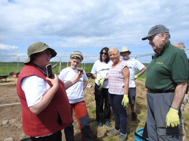 Excitment of a significant find, Iron Age Pottery. Digging Drumanagh Community Archaeology Project