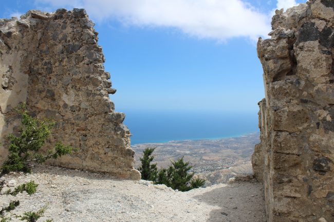 Here is Κάστρο Βουφαβέντο/Buffavento Kalesi (Buffavento Castle) overlooking the northern coast of Cyprus. On a clear day, you can see the southern coast of Turkey. Locals used the castle beginning in the Byzantine period until the 14th century when the Republic of Venice took over the island. It was built for strategic defense on steep mountain crags in the Kyrenia Mountains at a conjunction between the nearby St. Hilarion and Kantara castles.