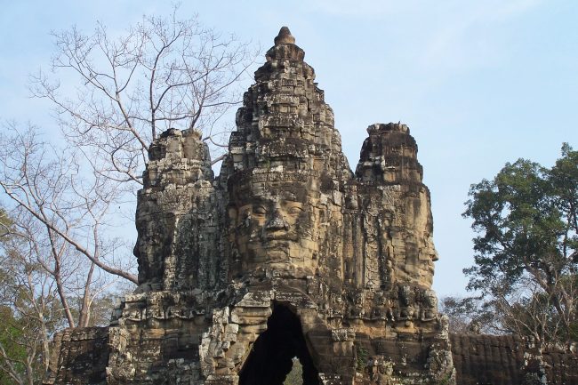 The South Gate of Angkor Thom, the last capital city of the Khmer Empire (view from the south). The city was founded by king Jayavarman VII (reigned c. 1181-1218 AD) and abandoned in the early 17th century.