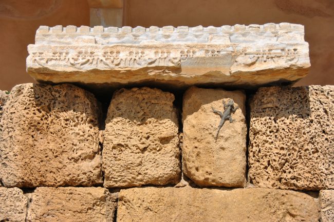 Architectural detail of the Roman amphitheater’s exterior at the Caesarea Maritima (view from the south).