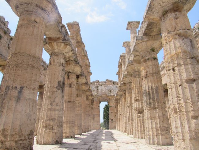 An image inside on of the three Greek temples at Paestum - colonized by the Greeks in ancient times.