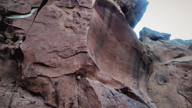 Rock Art in a Chacoan house: Petroglyphs on Una Vida trail.