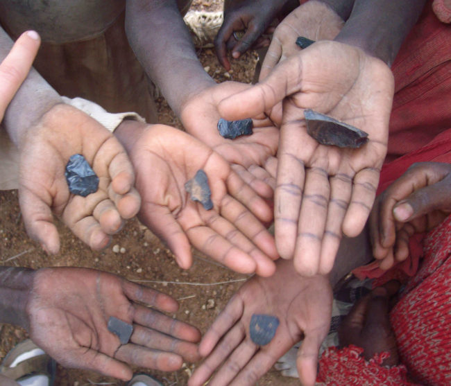 Once the local children knew we were looking for stone tools, they came running back proudly offering us handfuls of them.