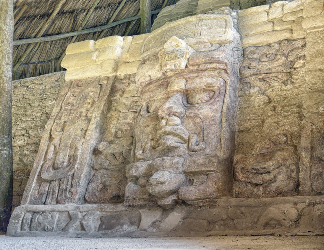 Detail of a panel in the Temple of the Masks (ca. 500 A.D.) at Kohunlich, a Maya ruin