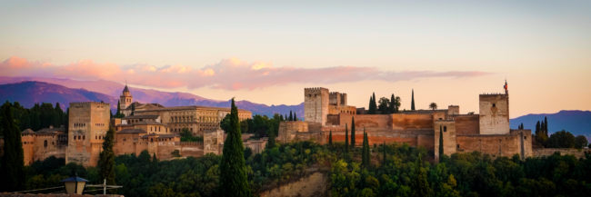 Panoramic view of the majestic Alhambra at sunset