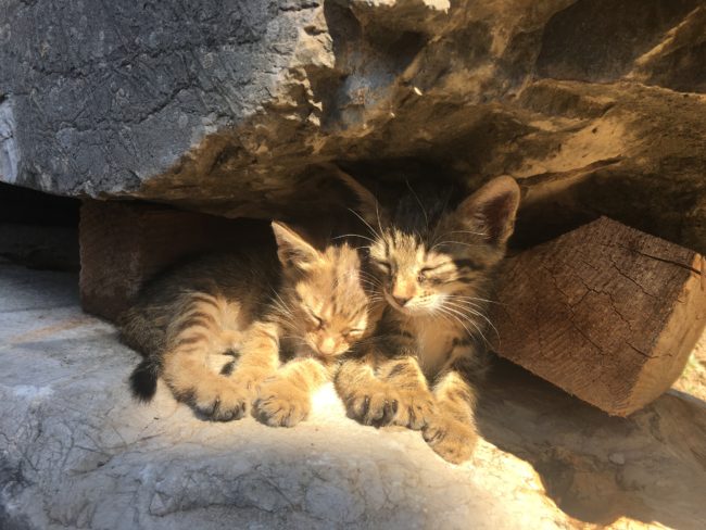 Kittens in between architectural blocks in the sanctuary of Delphi