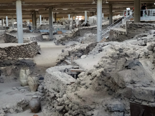 Akrotiri, buried city on Santorini Island. Objects left in situ.