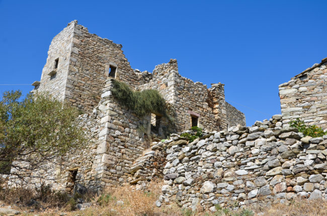 Ruined tower in Mani village The Mani peninsula is mountainous and was historically reached only by sea. Inhabitants there built ever taller tower houses in the 18th and 19th centuries CE. Many of these mountain villages and their towers are now abandoned.