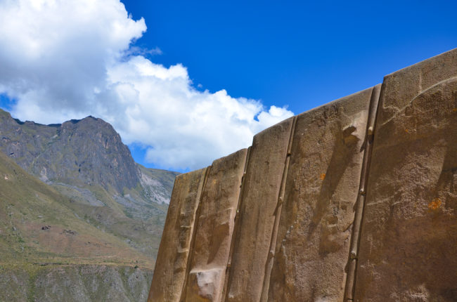 Wall of the Six Monoliths Ollantaytambo is a site of impressive Inca 15th Century architecture erected by the ruler Pachecuti.