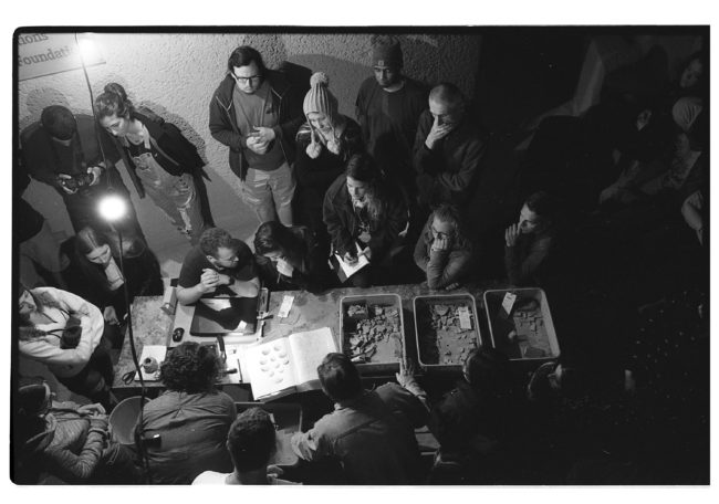 Knowledge of the first generation passing on to the new generation. Malka Hershkovitz teaching pottery reading with the new Masada Expedition, 2017 (Photo by Dr. Hai Ashkenazi)