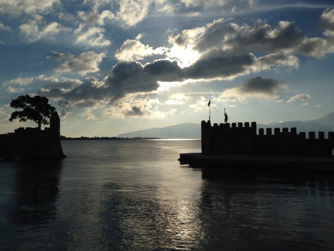 The Venetian harbor of Nafpaktos in central Greece. The medieval fortress which culminates in the two arms of the harbor pictured here, reflects only a snapshot within this small town's at least 2,500 year history.