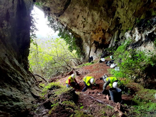Excavation of La Cuesta cave during the rescue of a roman hoard of 209 coins of the IV and V century A.D.