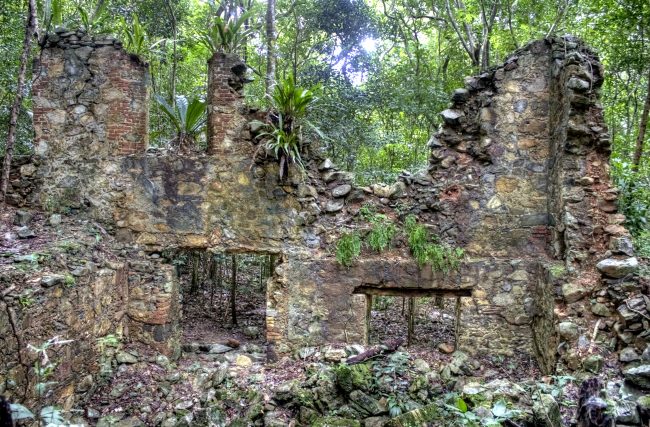 Only the masonry foundations of this sugar plantation's worker village remain.
