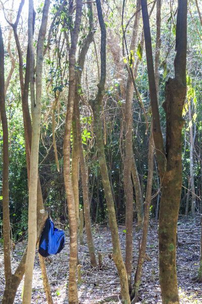 Backpack hanging from a tree right before prepping to dig at a site we had to hike a short distance to get to in the USVI.