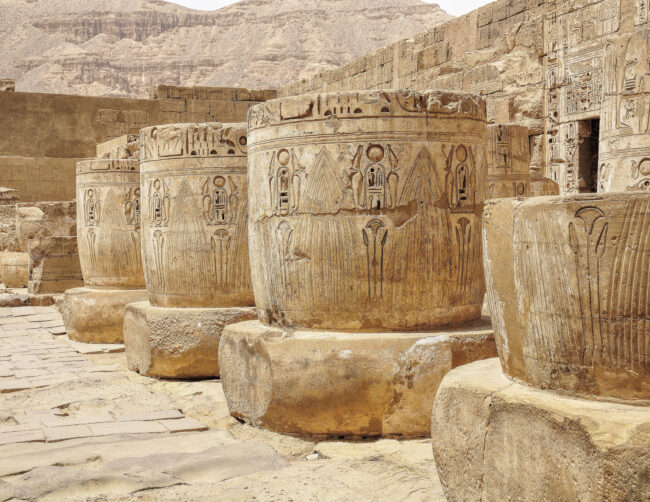 Inscribed column bases of Medinet Habu, the mortuary temple of Ramses III.