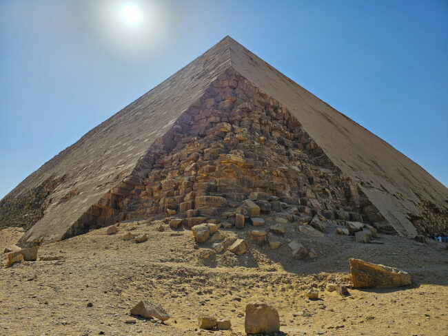 North East corner of the Bent Pyramid, Dahshur, Egypt, showing effects of blocks taken as spolia