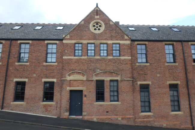 Built by the Sunderland School Board in 1884 to meet the needs of the rapidly expanding industrial town, the school was built on a narrow piece of land on the steep Wellington Bank. The architectural competition to design the building was won by J.W. Rounthwaite (1851-1927).