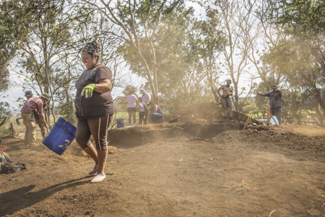 Work that brings joy, despite difficult conditions. Excavation at the top of an earth pyramid from the dawn of Mayan civilization on the southern rim of Mesoamerica