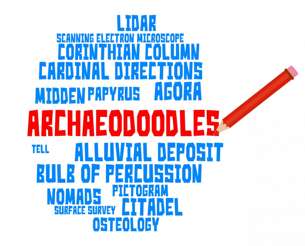 The 2023 winners of the ArchaeoDoodles contest were Gina Schlobohm in the adult category for “citadel” and Julia (age 17) for “cardinal direction.”