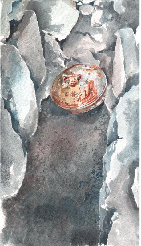 At the end of the day, we finished uncovering the ceramic vessel and removed it from the tomb. Rather than an armadillo or a jaguar head, it turned out to be the head of a peccary, a native pig-like mammal of Central America. Based on the design of the vessel, it was clear it came from the Early Classic Period (300-600 A.D). What was rare and unusual about this ceramic vessel was that the peccary body was not included on the body of the vessel. Usually when you have an animal head on the lid of a vessel, it is included on the body of the vessel as well. On the northern end of BU 12, we found a round ceramic object, as well as an earspool, both of which that were removed from the tomb. In burials of the Maya, earspools are very common.