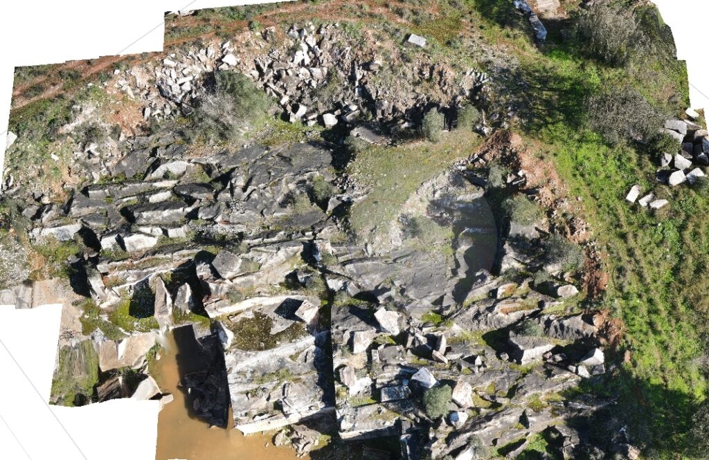 As Roman stone exploitation was not hitherto subject to any systematic analysis in what is now Portugal, our understanding of what lithotypes were used and their respective sources was rather limited. As such, this project first aimed to determine possible main source areas for stones observed in Roman archaeological sites, contrasting the characteristics of each lithotype with geological charts and the modern ornamental stone industry catalogues. Following this first task, a desk-based assessment ensued, analyzing various geospatial datasets, such as aerial imagery and LiDAR data, archive records and geological and archaeological databases, mapping all the available evidence and defining areas of interest for subsequent fieldwork. This included a wide range of actions, from a simple photographic register to pedestrian and aerial surveys, in distinct areas of central and Southern Portugal. Being unable to mention all of them, I highlight a few.