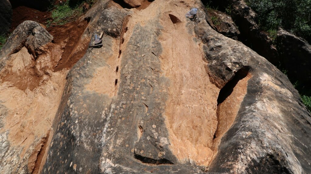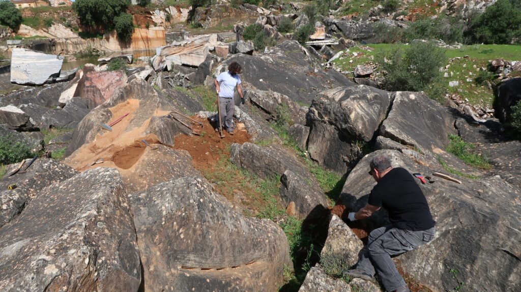 The Estremoz Anticline has been frequently considered the most important marble quarry area in this part of the Roman world, however, evidence for ancient exploitation has been relatively scarce. While mapping all the available archaeological data possibly related to this activity was the first step in our study of this area, a particular interest was devoted to the significative hydraulic structure known as Tanque dos Mouros, which could have powered stone sawmills. A small paper on this was published last year. Taking to the field, we resurveyed all the previously known quarrying remains, registering small evidence and larger areas with photogrammetry. In some cases, the surveys required targeted cleaning undertakings, as some elements of interest were covered by vegetation, recent soil deposits and modern quarrying debris. Surveying the surrounding areas also revealed previously unknown elements, particularly two well-preserved extraction areas. Additionally, collaborating with the local marble industry allowed us to track new evidence discovered during modern extraction works, especially a quarry displaying an interesting set of marks evidencing the use of saws to extract stone blocks, an exquisite technique not yet documented elsewhere in this region. Integrating this data into a wider research framework and working with several colleagues, some of the results obtained in the Estremoz Anticline will be published in an international peer-reviewed journal later this year.