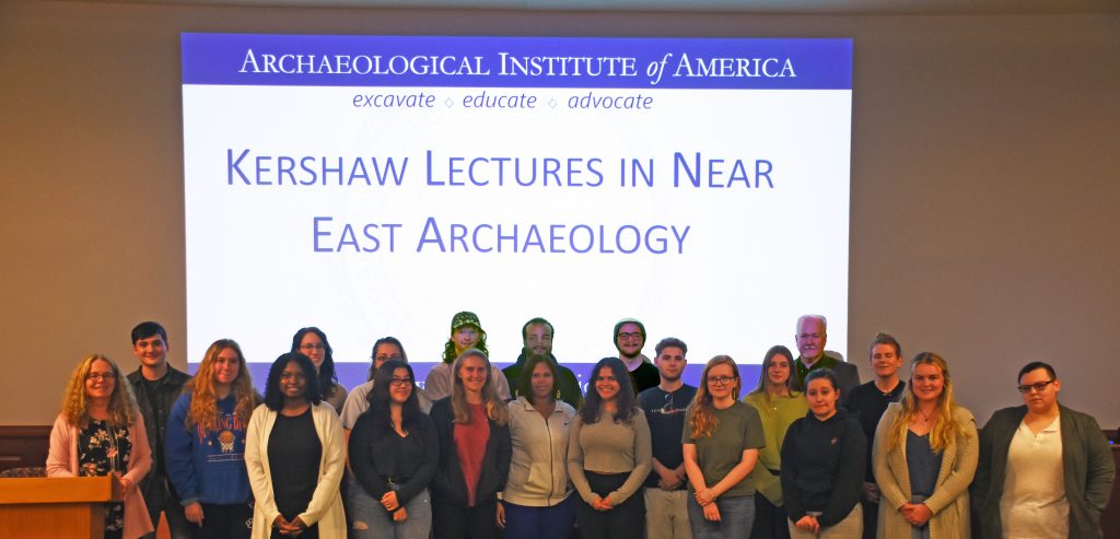 “With the arrival of the fall semester, public in-person lectures and student/community outreach activities resumed and exceeded pre-Covid participation numbers. Our featured November 1st lecture, “Not Black and White: Seeing and Naming Africans in Greek Art”, by Dr. S. Rebecca Martin (Boston University), was co-sponsored by several departments and programs at the Pennsylvania State University (Classics and Ancient Mediterranean Studies, Anthropology, and African Studies). At this event, we also honored a record-breaking 22 Penn State students as this year’s recipients of the AIA Matson Student Membership Fellowship (Photo 1). Also, for the first time in many years, the AIA-Central Pennsylvania Society co-sponsored International Archaeology Day outreach activities on October 15, 2022 with the Department of Classics and Ancient Mediterranean Studies and the Matson Museum of Anthropology at Penn State. The first event, organized by Dr. Hannah Smagh (Penn State), gathered archaeologists from across the disciplines to talk about their experiences entering the field of archaeology as well as the methods used in and areas of their current research. This event showcased Penn State archaeological research in South and North America, the Classical Mediterranean, and Egypt. For the second event, Dr. James Doyle, director of the Matson Museum, hosted an open house of their collections and brought material out of storage to allow students and the community to get up close and gain hands-on experience with material from the ancient Americas, Asia, and the Mediterranean (Photo 2).”