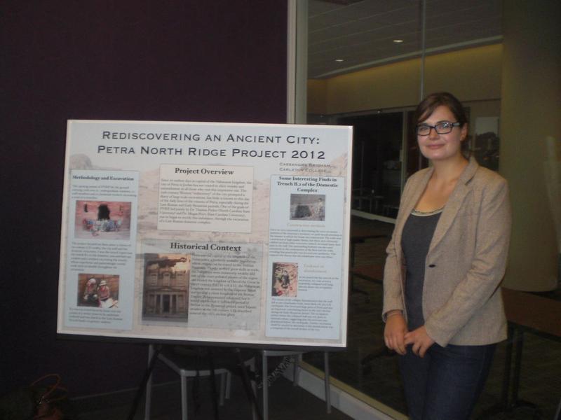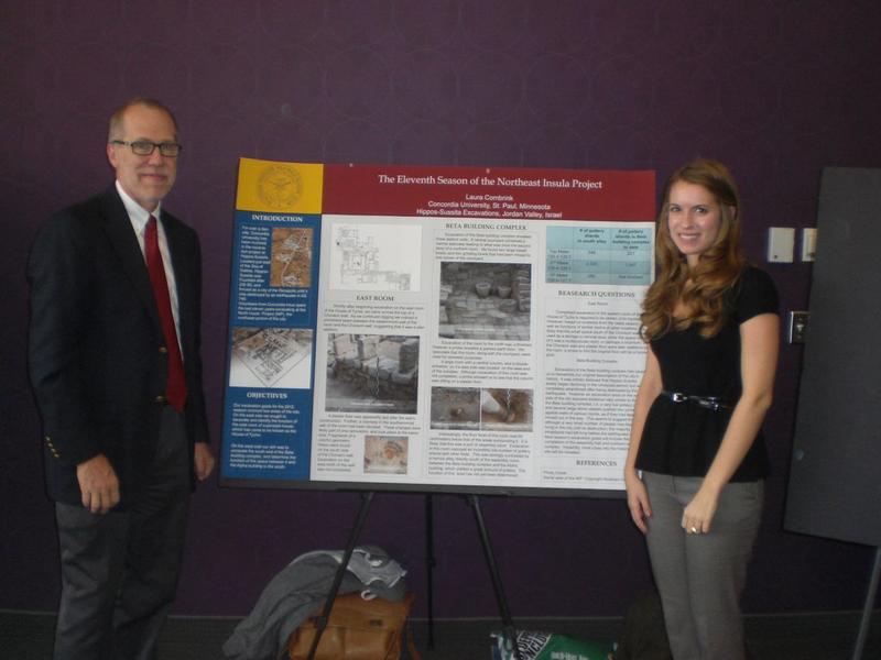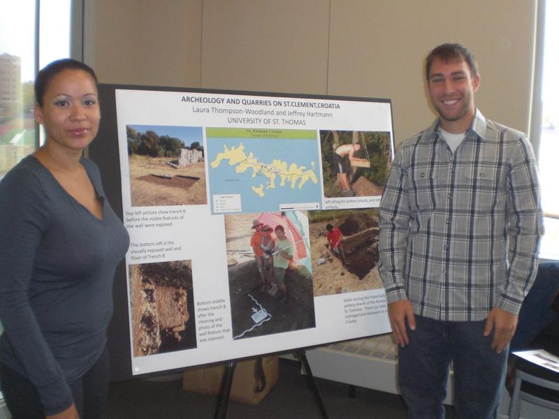 The AIA-Minnesota Society celebrated National Archaeology Day with “Students in Archaeology: Poster Presentation of Recent Fieldwork,” a poster session featuring the archaeological work of eleven undergraduate and graduate students from five Minnesota colleges (Carleton, Gustavus Adolphus) and universities (Minnesota, St. Thomas, Concordia). The sites represented are in Bulgaria, Croatia, Israel, Italy, and Jordan. By presenting their work, students introduced their classmates, families and friends to the AIA and to its global work. The poster session brought together students and professionals from different institutions, as well as AIA-MN members, some parents and the public at large. Thanks to the Outreach Grant, the society was able to reimburse students for the costs of poster printing and serve refreshments at this event, which encouraged mingling and conversation.