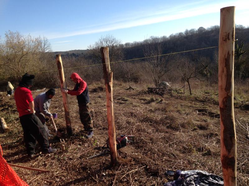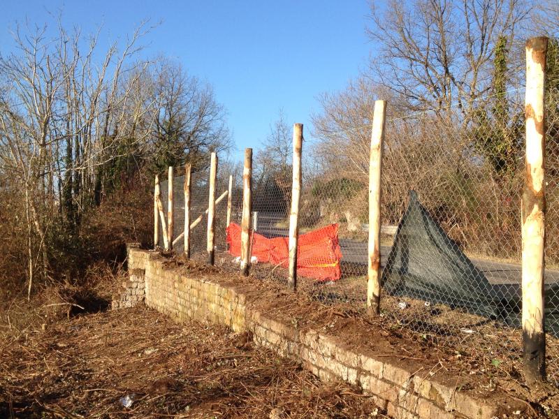 Work has continued steadily at “Adopting Narce: Rescuing a Forgotten Past” since we last updated you in the fall. After the first event of “Cleaning La Petrina” at the end of September 2014, we worked on the creation of an updated digital map of the cemetery with the exact location of the archaeological path. At the same time, we collaborated with the Municipality of Mazzano Romano, to survey the entire slope, which redefined the cadastral map and allowed us to virtually place where the panels explaining the history of the necropolis would go on the site. In the spring, we focused on building the fence to protect the site from looting and trespassing, which had turned the necropolis into a rubbish dump. After cleaning the entire area and properly removing dangerous asbestos, we traced the orientation of the new fence. According to the guidelines suggested by the Regional Park Valle del Treja, the entire fence has been made of wood with an aluminum grid. Once the fence was assembled, we worked on the panels and created a natural trail for visitors to walk. Dangerous holes made by tomb looters were finally backfilled using the soil resulting from the cleaning of the path. Together with the conservators from the Istituto Superiore per la Conservazione e il Restauro (University for Conservation) we have also been monitoring the cracks in the natural tufa bedrock and especially on the architraves of the tombs as well as plant growth and root movement in the tufa.