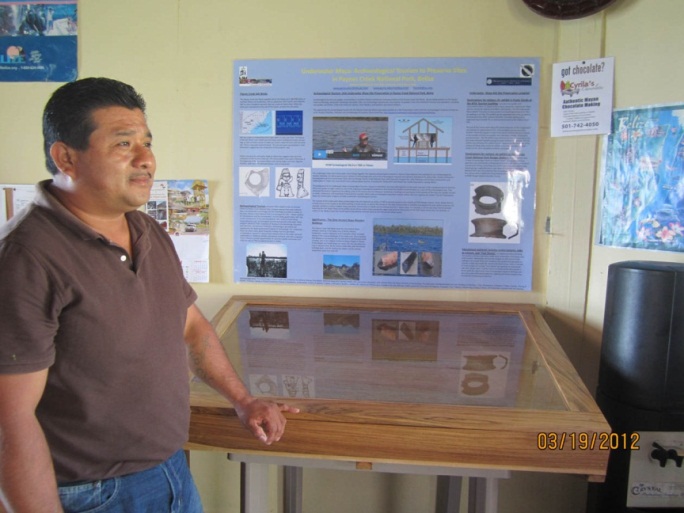 An AIA Site Preservation Grant funded a project to help protect the Underwater Maya Sites in Paynes Creek National Park (PCNP) through Archaeological Tourism by incorporating the nearby communities in grass-roots, sustainable tourism. In March 2012 LSU PhD student Cory Sills and I opened two permanent archaeological exhibits, including one exhibit at the Belize Tourism Center in Punta Gorda, and another at the Ranger Station, some 30 miles away by boat in Paynes Creek National Park.