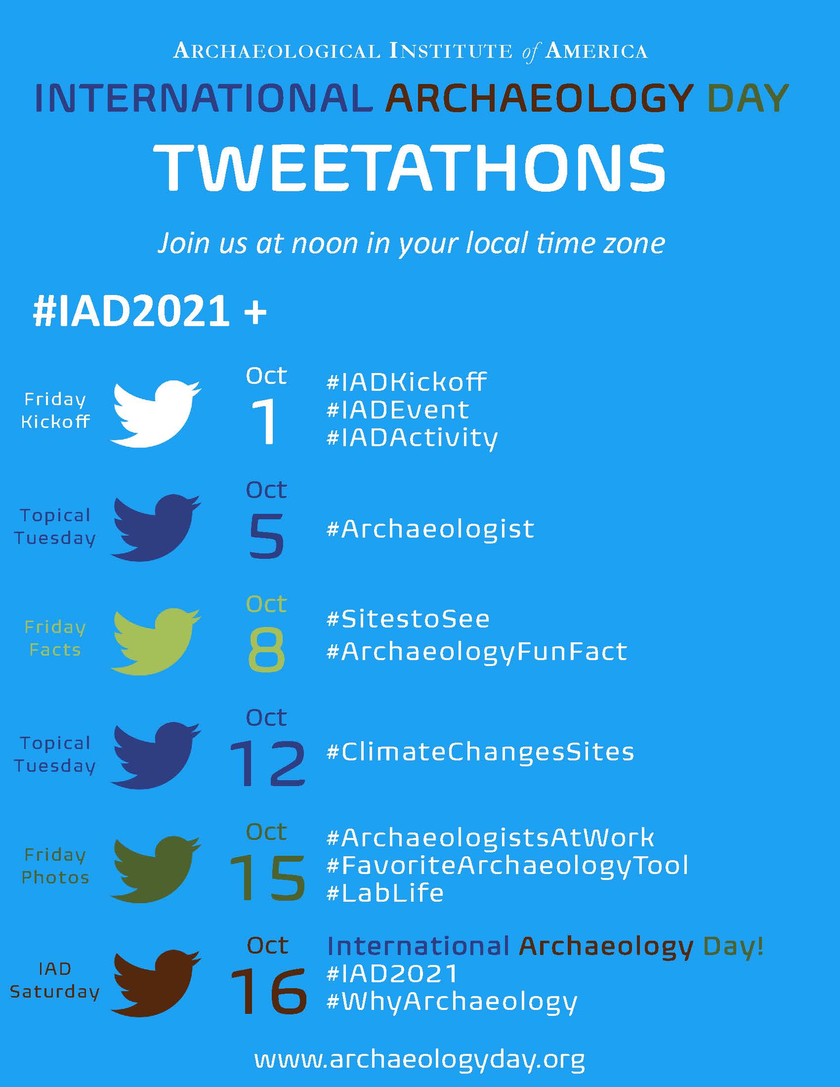After a highly successful debut last October in celebration of International Archaeology Day, the AIA will be bringing back Tweetathons in 2021. Mark your calendar for Tuesdays and Fridays leading up to International Archaeology Day on October 16.