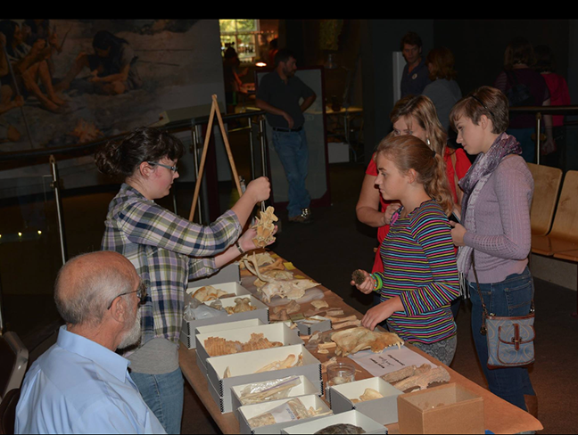 The AIA-East Tennessee Society co-sponsored “Can You Dig It? International Archaeology and Fossil Day” on Sunday October 11, 2015 at the McClung Museum for Natural History and Culture, which is located on the campus of the University of Tennessee at Knoxville. It was a roaring success: some 450 visitors—mostly parents with children—showed up for an afternoon of fun and information about archaeology. Many archaeologists set up booths with info about their research projects and related kids’ activities.