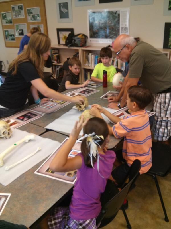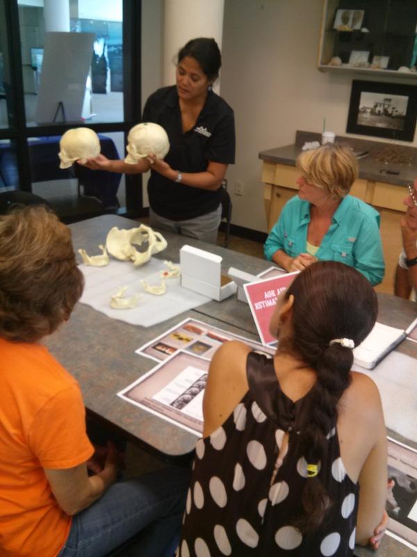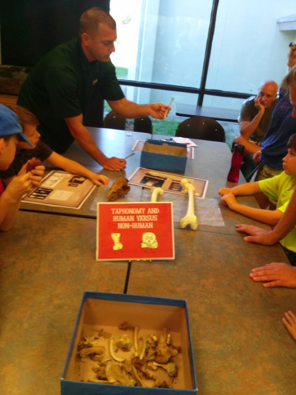 In celebration of International Archaeology Day, staff from the West Central office of the Florida Public Archaeology Network put on a hands-on archaeology workshop at the Weedon Island Preserve in St Petersburg, FL. The workshop, entitled “Archaeology Works: Bones”, is part of a larger workshop series developed by FPAN West Central staff and allows participants to get up close and personal with artifacts that archaeologists study on a regular basis. Other topics in the Archaeology Works series have included pottery, shells, hunting technology, and archaeological flotation/archaeobotany. For “Archaeology Works: Bones”, FPAN archaeologists were assisted by forensic anthropologists from the University of South Florida in Tampa. Members of the public, from young children to retirees, learned how archaeologists and anthropologists study human remains, and then got to try their hand at different research methods using casts of bones from the USF teaching collection. One of the things participants found most interesting was the fact that human bones can reveal so much about the culture they come from. The activities people do and the environment they live in leave marks on their bodies, and with the proper skills anthropologists and archaeologists can learn a lot about people in the past (as well as those today) just from their remains.
