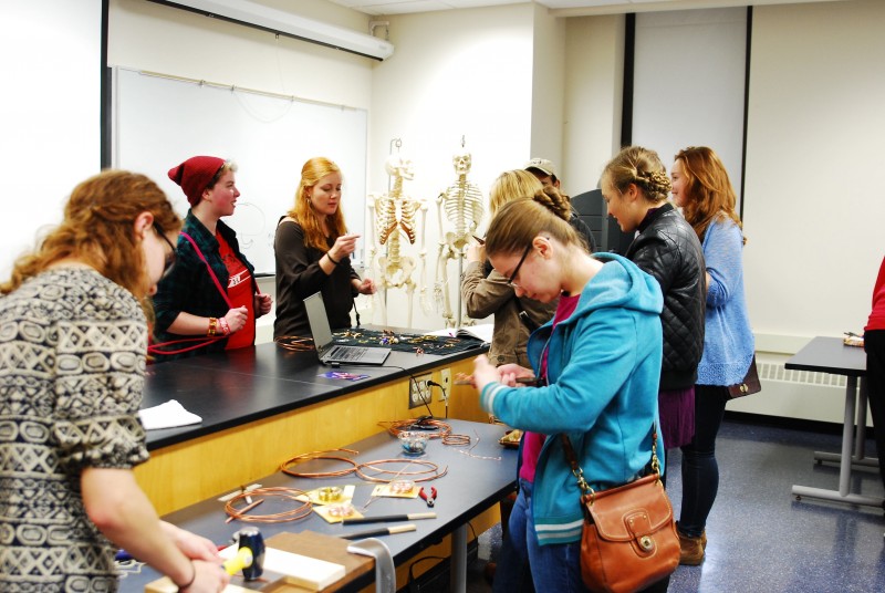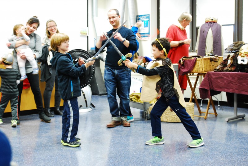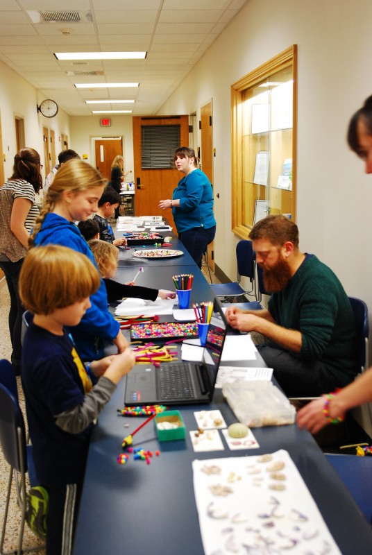 This year to celebrate International Archaeology Day the AIA-Milwaukee Society hosted “You Are What You Wear: Clothing and Adornment in the Ancient World.” In ancient times, just like in modern times, different fashions and ways of dressing could say a lot about a person and their culture. The AIA-Milwaukee Society, along with University of Wisconsin-Milwaukee’s Departments of Anthropology, Art History, and FLL/Classics put together a wonderful program of activities and demonstrations to show how ancient fashions changed through time, and how clothes and jewelry were made. Visitors got to see weaving on a Neolithic standing loom, demonstrations of nålebinding, reenactors dressed up in ancient Roman garb, learn about ancient tattooing, and were able to make their own fibulae and other jewelry. Everyone had a wonderful time helping history come alive by making clothes and jewelry, and dressing up like the ancients did!